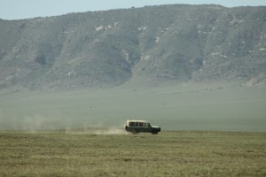 Immediately the quiet engulfed us. A slight breeze blew across our faces, and the silence was interspersed with the occasional warble of a lark. We felt as if we were some whispy seeds leaving the last dandelion, and a breeze had blown us over an arid amber ocean. We were tiny insignificant specks crossing a vast plain. We came to a drop off, and could see Ol Donyo Lengai (“The Mounatin of God” to the Maasai), an active volcano, in the distance, rising sharp and vertical, forcing anyone who could see to notice.