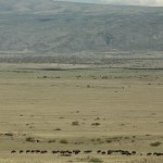 A long line of migrating wildebeest was on the march below us, heading south, looking for water and greener pastures. They looked tired and weary, and seemed tiny, like ants, unimportant, easily forgotten – us.